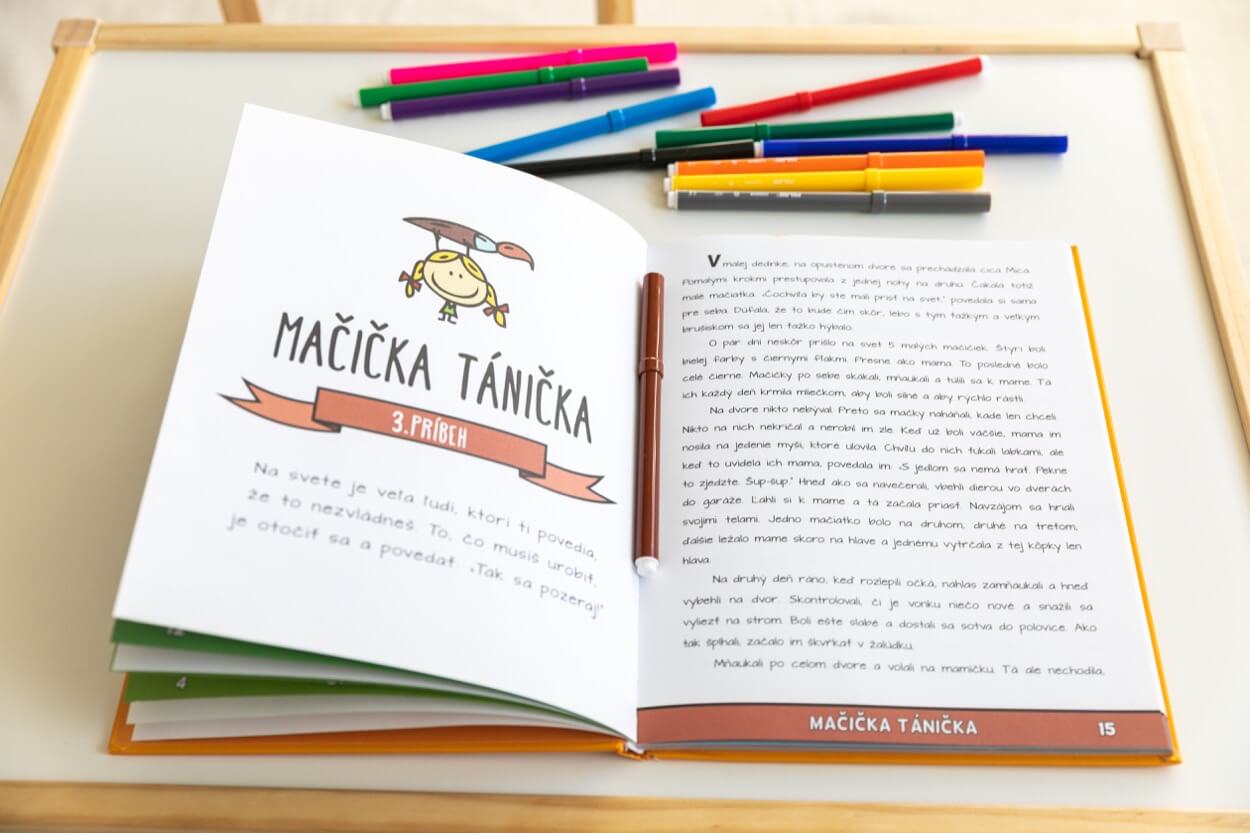 Knižka obsahuje 12 príbehov, v ktorých vystupujú zvieratká. Na konci každého príbehu je ponaučenie, ktoré milou formou rozvíja cnosti u vašej ratolesti. Dĺžka príbehov aj veľkosť písma je prispôsobená deťom. Knižka obsahuje 24 prázdnych strán na ilustrácie vašich ratolestí. V knižke nájdete nasledovné príbehy: